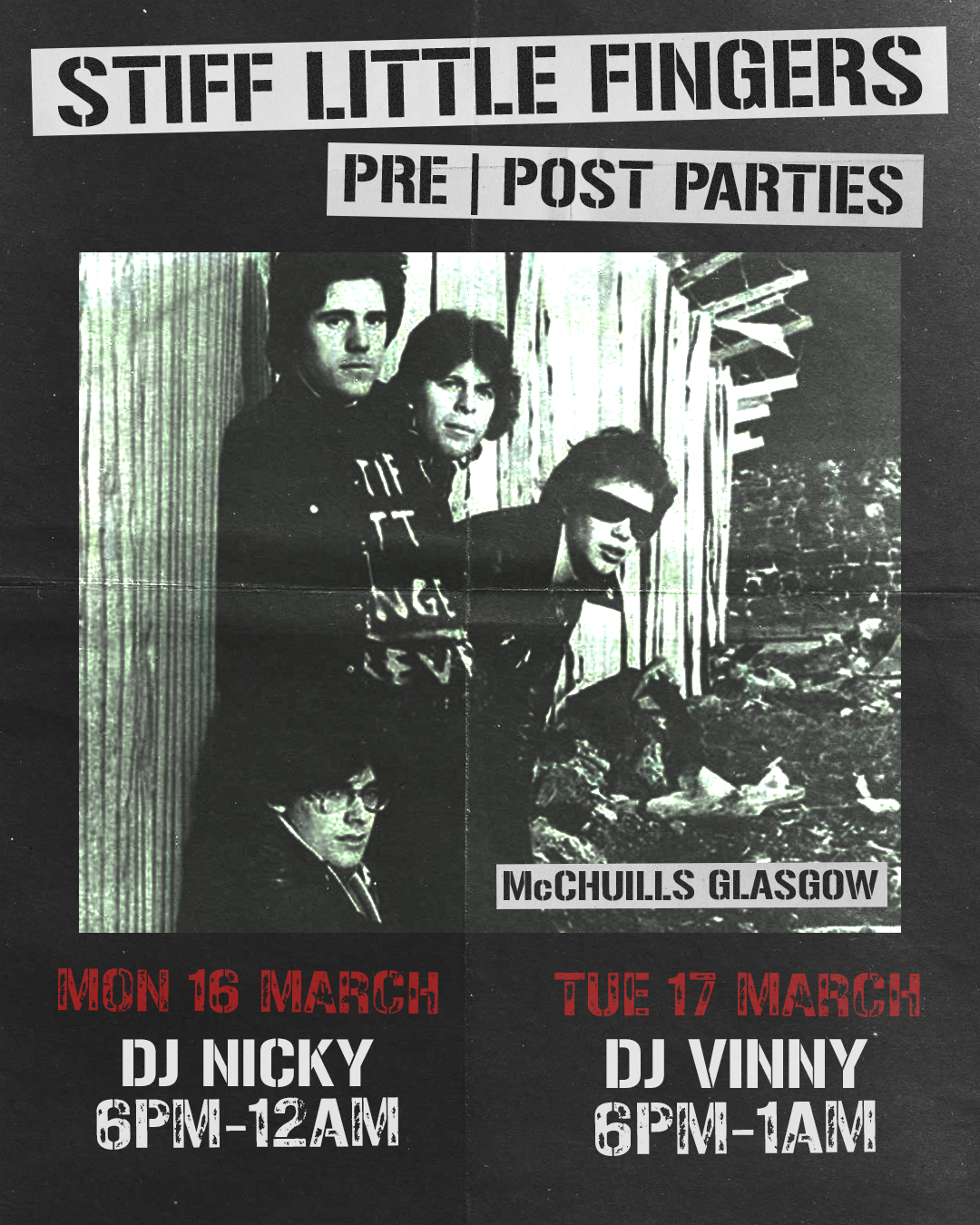 McChuills will be having a proper party before and after the gigs on the 16th and 17th of March with DJ's Nicky and Vinny!