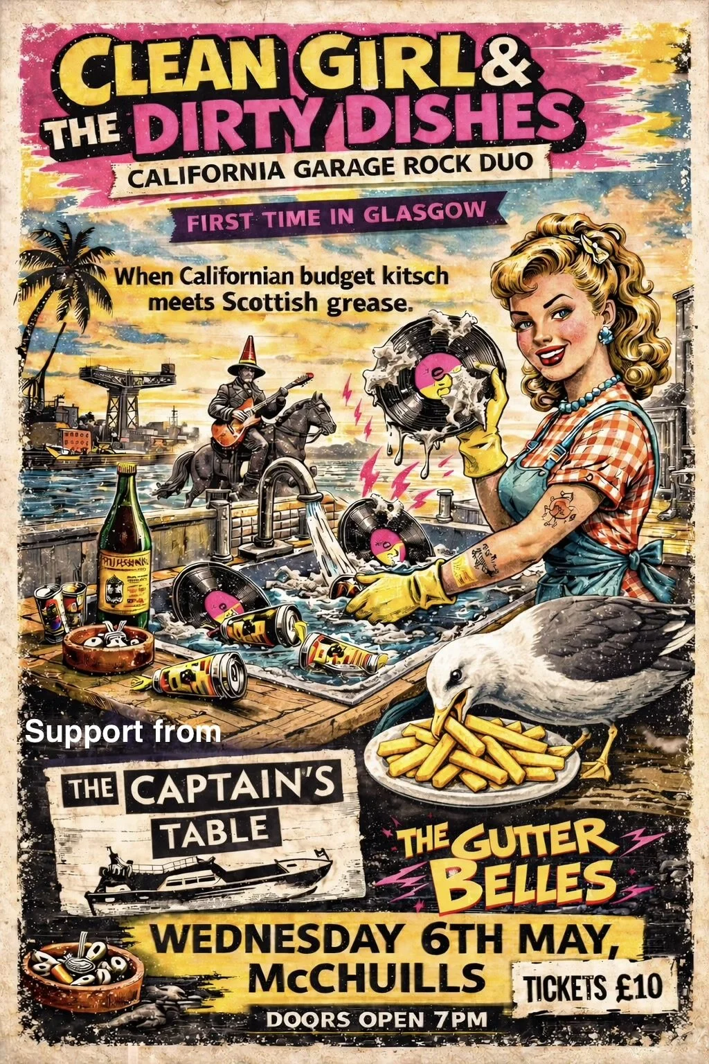 Californian bargain budget Kitsch'n Garage Rock Duo meet Scotland’s grease. Servin up the hits, raw and well done! With support.