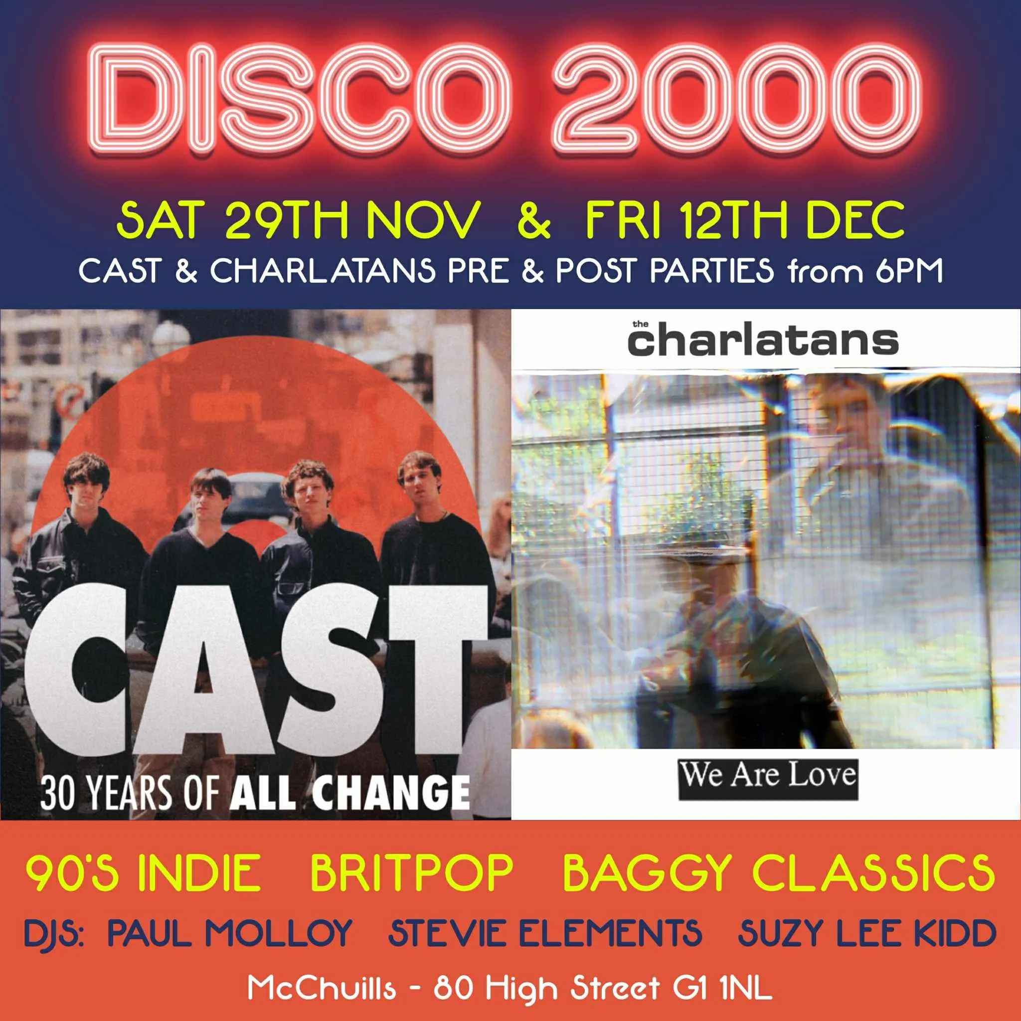 Join Paul Molloy, Suzy Lee Kidd & Stevie Elements for a special “The Charlatans” edition of Disco 2000.
