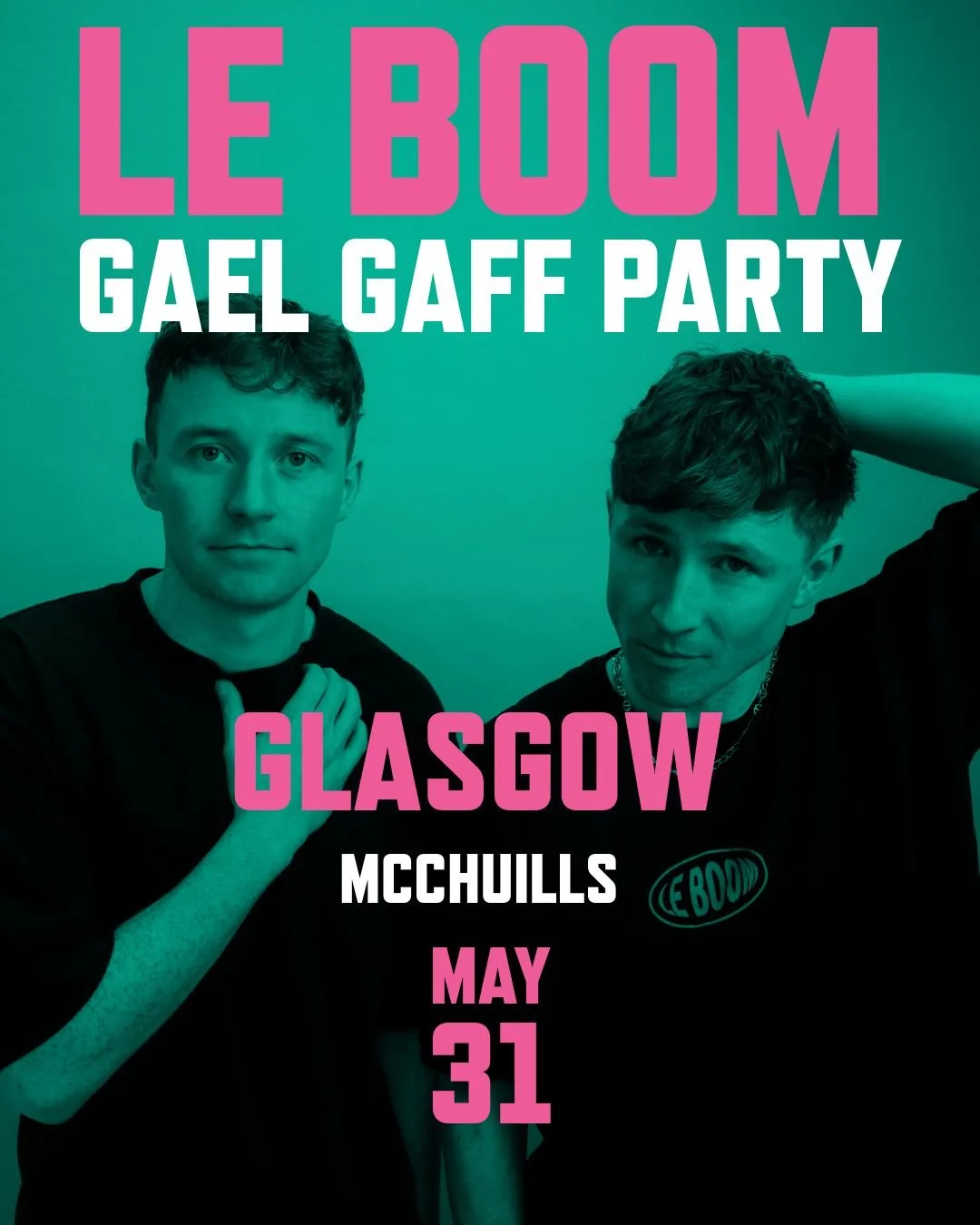 Hailing from Navan Ireland, Le Boom are two brothers making high energy dance music who's sound has been described as “4am chats with your mates". Emerging from secret raves, the infectious energy of their live performance has prompted lightning-fast sellouts for dates across Europe including a sold-out 3000 capacity warehouse show in Dublin, two sold out nights at the 3Olympia as well as sold out shows in London and Spain. After appearances at festivals like Forbidden Fruit, All Together Now, Secret Garden Party & Latitude, Le Boom captured euphoria on their latest singles ‘Orange Glow’ and ‘Class’. The spoken word lyricism offers cathartic contrast between tongue-in-cheek narration & iridescent synth work. The tracks garnered national radio play in the UK and Ireland with notable support from Pete Tong, Sarah Story and Arielle Free.