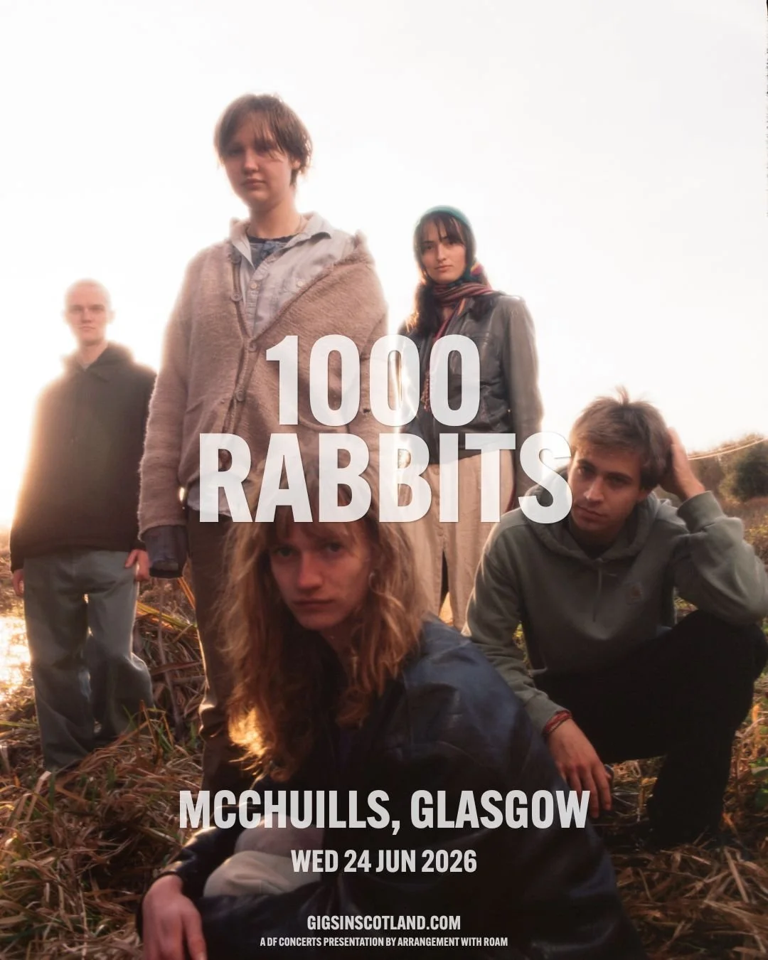 Five-piece 1000 Rabbits are the off-kilter art-pop picnic who tell stories through human sounds, both intimate and extroverted. Grounded by playful bass synthesiser, expressive vocal lines weave through a colourful tapestry of violin, guitar and drums. Ditch your self consciousness and move your body.