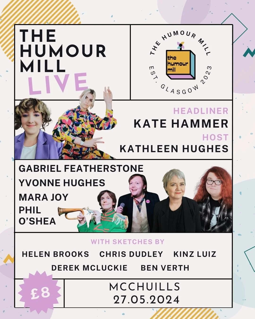 The Humour Mill is a comedy networking and skill-share community based in Glasgow focused on supporting and highlighting brilliant new comics - come along and discover your new favourite act!