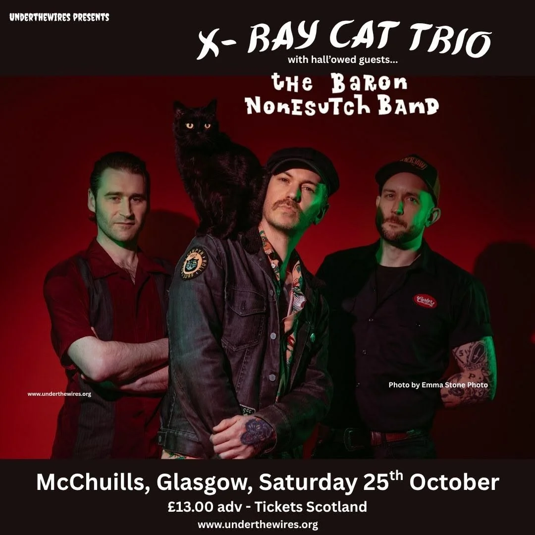 It’s Leeds’ favourite surf punks, X Ray Cat Trio, play soul-shattering songs about love, hate, murder and monsters. Wearing their influences on their sleeves, it’s gloriously clear they draw faithfully from the authentic stylings of Nasty 50’s Rockabilly, gritty 60’s Garage and trashy 70’s Punk Rock. This is no-messin’ rock and roll at its finest.
